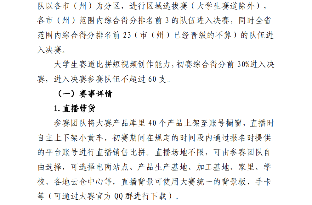 為培育電商直播人才,推進(jìn)電商新業(yè)態(tài)新模式發(fā)展,推動電商提質(zhì)升級,為全省經(jīng)濟(jì)注入新動力,省商務(wù)廳擬于近期舉辦2022年責(zé)州省電商直播大賽,現(xiàn)將有關(guān)事項(xiàng)通知如下: