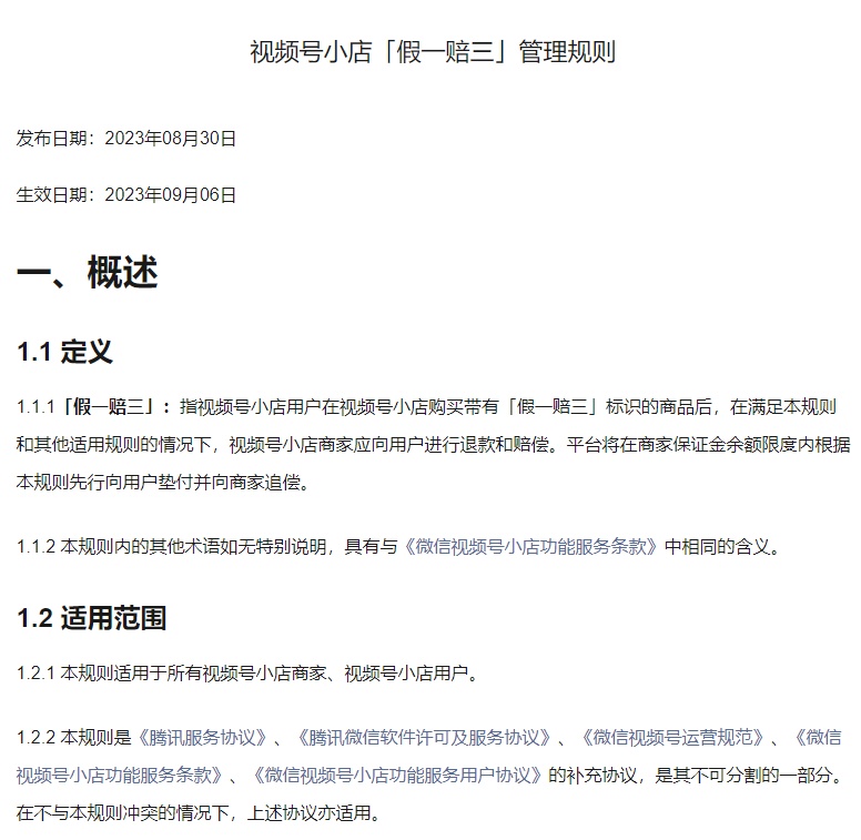 視頻號(hào)小店發(fā)布“假一賠三”管理規(guī)則 將于9月6日生效